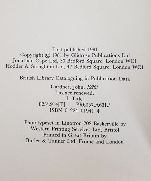 First in the John Gardner series of James Bond novels, in which Bond has to stop nuclear destruction of the West.