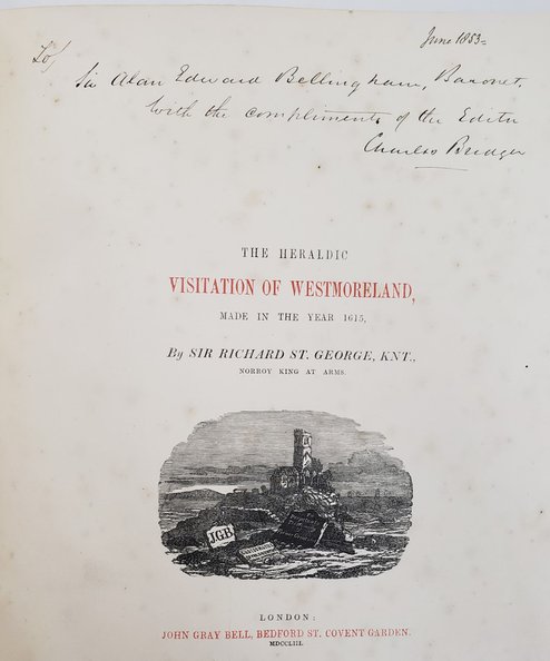 Scarce. Gift inscription from the editor to Sir Alan Edward Bellingham dated June 1853 to the title-page. Compiled from the manuscript of the visitations, carried out in 1615, in the Harleian Collection at the British Library.