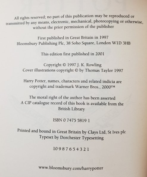 The special Celebratory Edition was published to mark the occasion of the release of the film version on 4th November 2001.