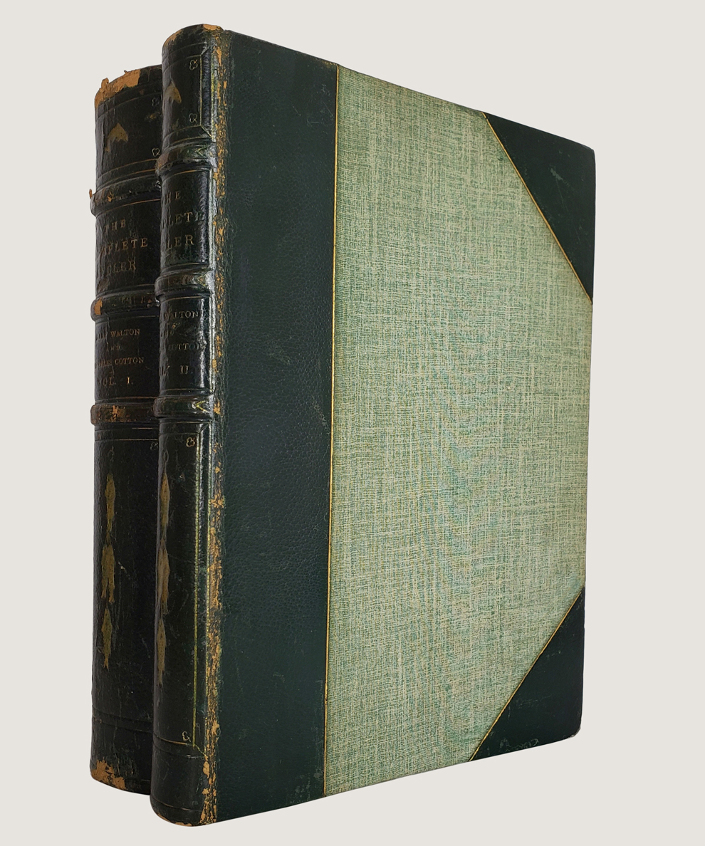 Sixth Bethune Edition. Number 9 in an edition Limited to 100 Large Paper copies. Quarto, pp., [2], [i-iv], v-cxxi, [cxiii], [1]-294; Volume II [2], i-iv, v-xxxii, [1]-215. Illustrated: frontispiece portraits of Walton & Cotton with tissue guards, 2 engraved scenes, facsimile of 1653 title page, 4 large woodcuts, 19 woodcuts of fish etc and 5 pages of music. Wants the Bethune portrait noted in Coigney. Contemporary dark green half-morocco by Roach & Co. of New York with 3 raised bands, gilt titles to spine and fish motifs to compartments, gilt fillets and light green cloth covered boards; top edge gilt; marbled endpapers. Leather scuffed with wear at spine tips and corners. Scattered light foxing; chip to margin p. 55/6 Vol 1 (text unaffected) and 2cm tear at fore-edge of rfep Vol II. A very good set.