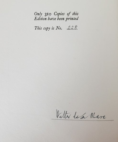 A near fine example of this charming illustrated edition of De La Mare’s first published work. Signed by De La Mare to the limitation leaf. Scarce.