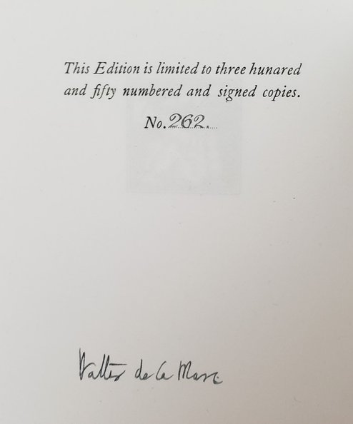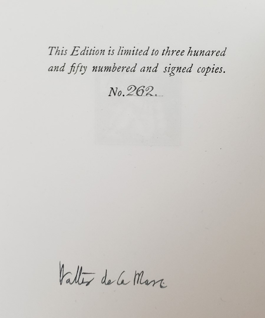 A very well preserved copy of this beautifully embellished edition of De La Mare’s enchanting children’s poetry anthology. Boldly signed by De La Mare to the limitation leaf. Scarce.