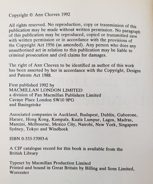 Third title in the Inspector Ramsay series by North-East crime writer Ann Cleeves, better known as the creator of DCI Vera Stanhope, the lead character in her series of Vera books, later made into the hugely successful ITV television series of the same name.