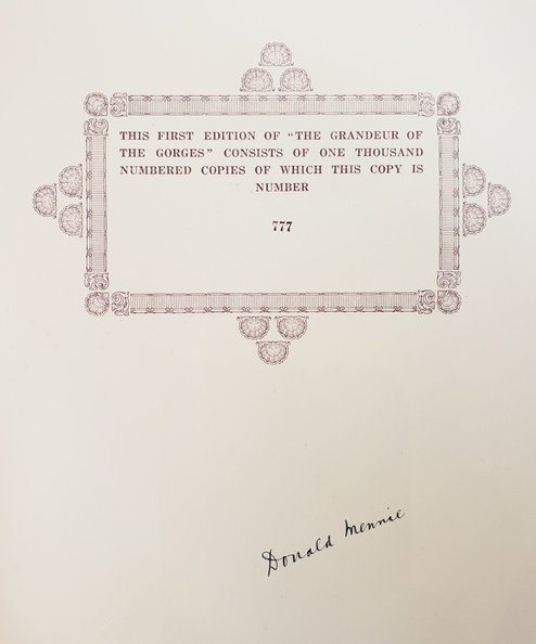 Number 777 in a Signed Limited Edition of 1000 numbered copies. Quarto, pp., [14], with 50 full-page tipped-in plates with decorative border and captions to backing leaf, of which 38 are photogravures and 12 are hand-coloured silver gelatin prints. Descriptive text and small line drawings to facing leaves. Publishers’ gilt calf, with bevelled boards in decorative embroidered silk with titles and chinese characters in gilt. Leather surface scuffed with loss to gilt and slight wear to corners; boards lightly rubbed. Author signature to limitation leaf, without dedication; pinhole to Limitation leaf and title page presumably from removed paper-clip. A little scattered light foxing, and a few leaves corner-creased; 2 backing leaves torn at fore-edge (approx 3 cm) but plates unaffected and all plates in good order. A Very Good copy.