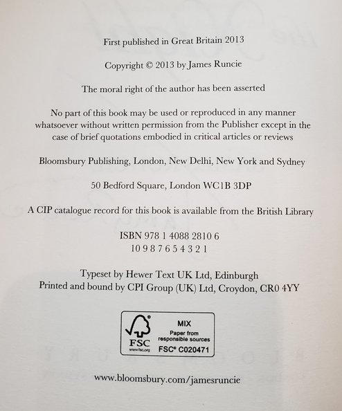 Boldly signed by James Runcie to the title page. The second novel in The Grantchester Mysteries series where Canon Sidney Chambers is called to investigate the unexpected death of a Cambridge Don who falls from the roof of King’s College Chapel.