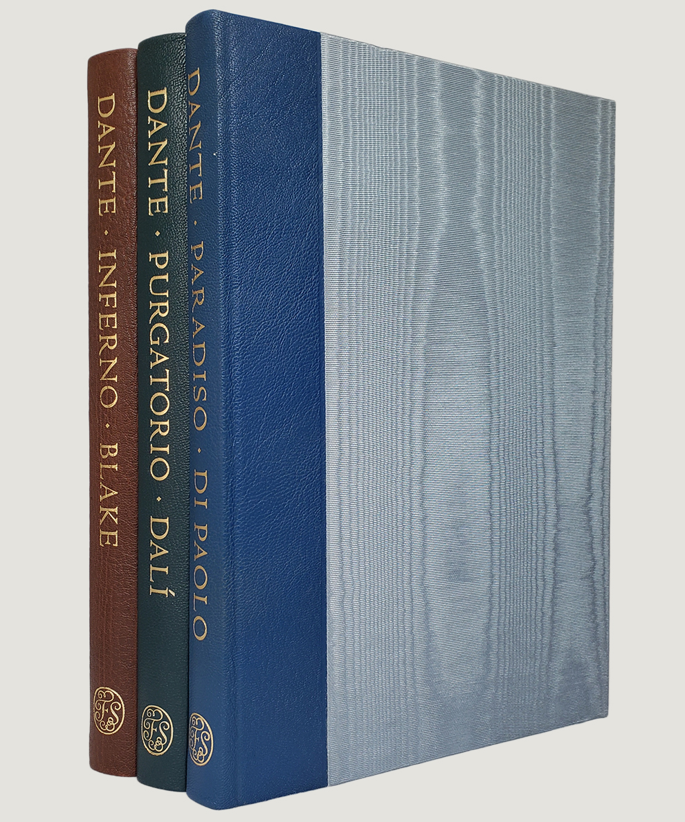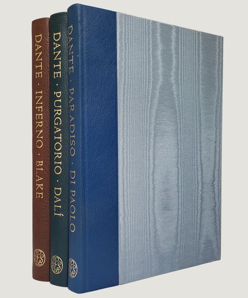 Quarto, pp., xviii, [2], 151; xvi, 154; xi, 203. Colour frontispiece plus 31 & 33 plates to Inferno & Purgatorio respectively; numerous colour in-text illustrations to Paradiso. Quarter morocco with blue moire silk boards with gilt titles to spines in matching slipcases with colour illustrated panels; co-ordinating coloured upper edges & endpapers. All volumes are exceptionally clean with no annotations or inscriptions. Very light surface scuffs to slipcases. Overall an extremely handsome set; fine books in near fine slipcases.