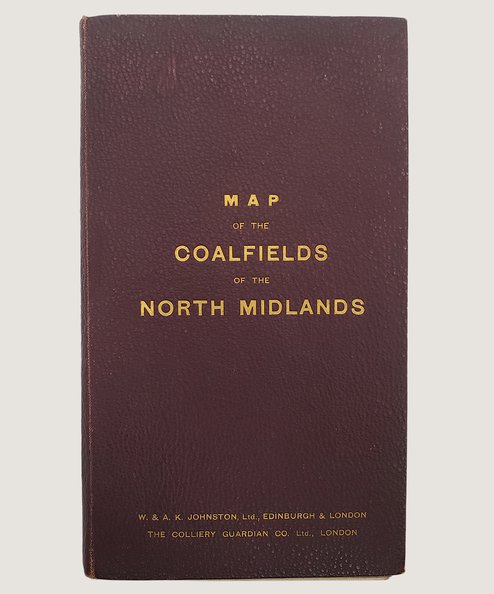 Map dimensions 90 cm x 79.5 cm, dissected into 32 sections, mounted onto linen and folded into maroon pebbled cloth case with gilt titles to upper board. With publishers’ ads to front paste-down and verso of upper section of map. Railway lines, ports, sea and boundaries marked in colour, alongside the collieries and coalfields. From Lancaster in the north, to Barlaston in the south; and Nottingham in the east to Denbigh in the west. With ‘Shipping Ports of the East Coast’ map insert to upper right corner. The map unfolded is bright, clean and crisp and the maroon pebbled cloth case is in similar condition.