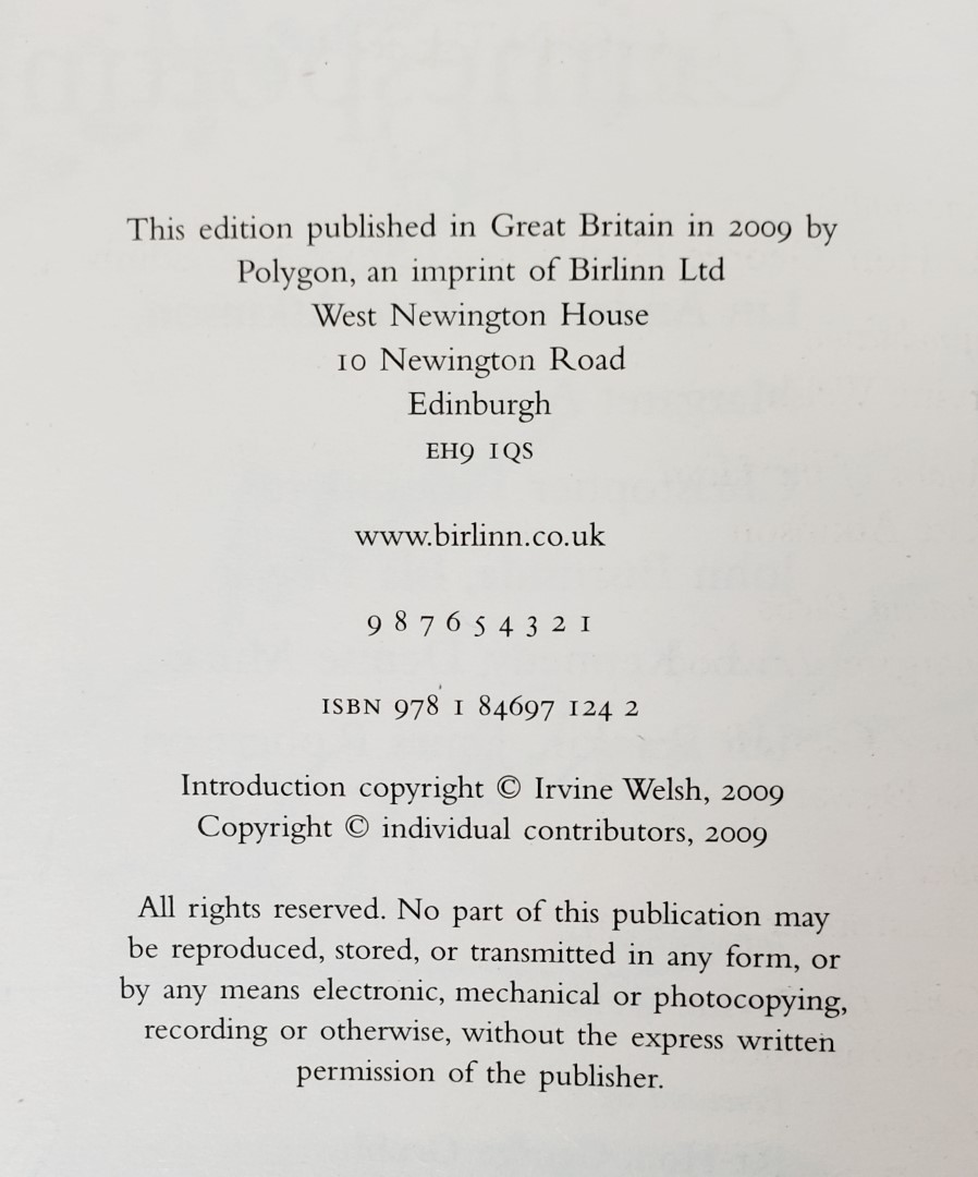Ten short crime stories inspired by the city of Edinburgh and commissioned by the OneCity Trust, each by a different bestselling author, with introduction by Irvine Welsh. All the authors as well as Welsh have signed this copy.