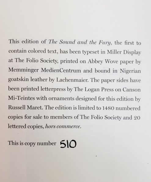 The Sound and the Fury. [Limited edition two volume boxed set of the novel accompanied with glossary & commentary]