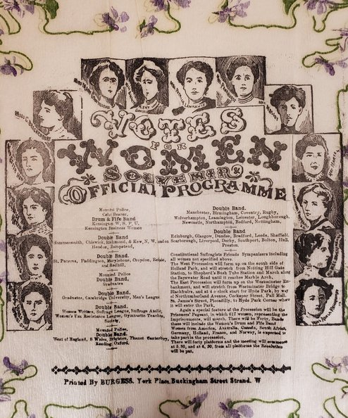 Votes For Women Souvenir Official Programme [crepe paper Suffragette napkin].