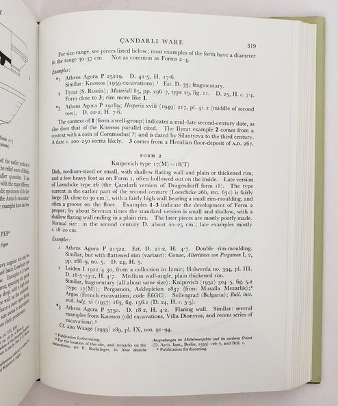 Comprehensive study of Roman fine wares of the second to seventh century A.D. from the Mediterranean provinces of the Empire. Subjects include fabric, technique and methods of decoration, well supported with scaled drawings of side views, cross sections, markings, motifs and decorative techniques. The book was intended as an indispensable work for museum curators and field archaeologists as well as students of arts and antiquities and historians of the Roman Empire. Heavyweight so a contribution towards increased postage costs will be requested for overseas delivery.