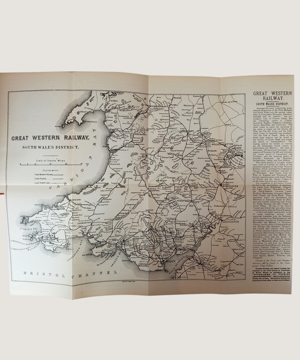 A guidebook from the Golden Age of railway travel, covering the destinations accessible from Great Western Railway lines. With all the information required for the discerning railway adventurer, with maps, attractions, hotel advertisements, all well illustrated with images of towns, cities and surrounding countryside and scenery.