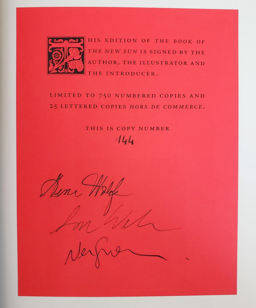 The Book of the New Sun: Volume I The Shadow of the Torturer [with] Volume II The Claw of the Conciliator, Volume III The Sword of the Lictor [and] Volume IV The Citadel of the Autarch [boxed set SIGNED by Author, Introducer and Illustrator].