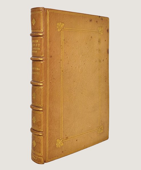First Edition. Octavo, pp. vii, [1], 192, 16 Catalogue. Frontispiece with tissue guard and title-page by Dante Gabriel Rossetti. Bound in superb full camel morocco bound by Sangorski & Sutcliffe, with 5 raised bands, gilt titles to spine and floral motifs to compartments; gilt fillets and decoration to both boards and gilt fillets to dentelles; top edge gilt; yellow silk endpapers. Second state, with "anguish" corrected to "aguish" at line 17, p. 26.