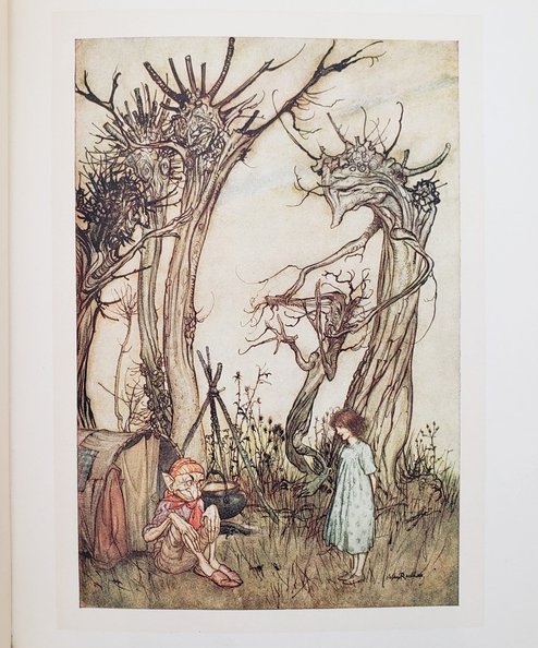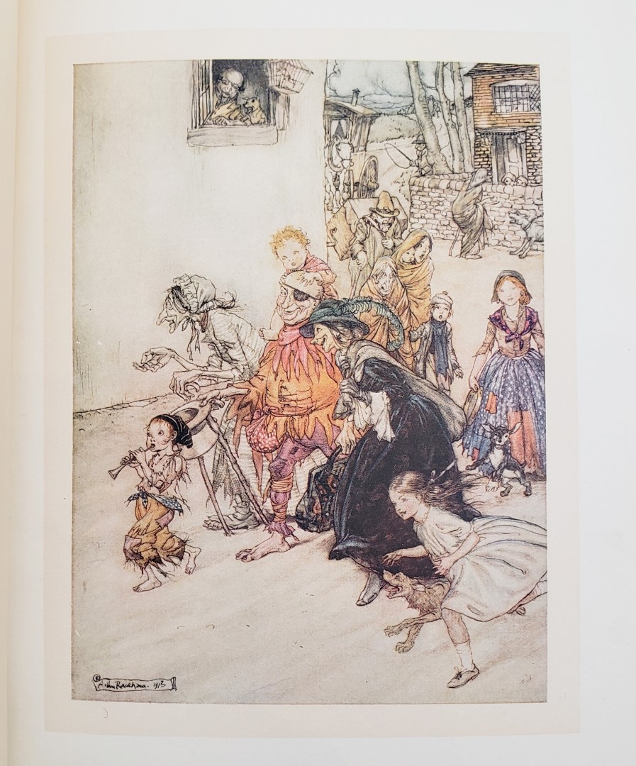 First trade edition. Small quarto, pp.159, xi, [1], [1]. Illustrated with 13 colour plates, including frontispiece, with tissue guards captioned in brown, and additional black and white illustrations throughout by Rackham. Bound in the original publishers’ pictorial cloth with cross stitch style titles and ornaments to upper board and. spine. Top edge blue. Illustrated endpapers.