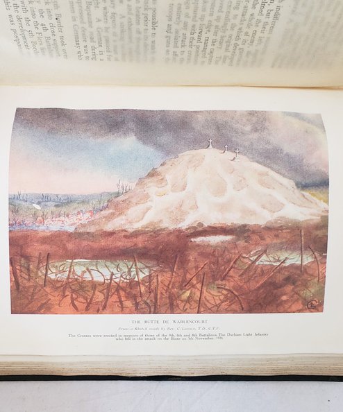 First Edition. Large octavo, pp., xvi, 281, [1]. Complete with 18 tissue-guarded plates including frontispiece of the Earl of Durham and colour plate of The Butte of Warlencourt; 18 folding maps in pocket to lower board, as called for. Original dark green cloth with gilt titles to spine and gilt crest to upper board. This is the more elaborate cloth variant with gilt embossed titles and DLI crest. Spine tips rubbed & boards lightly scuffed, with 2 small puncture holes to lower board. A little very slight foxing, mainly to endpapers, otherwise contents clean and bright. A very good copy.