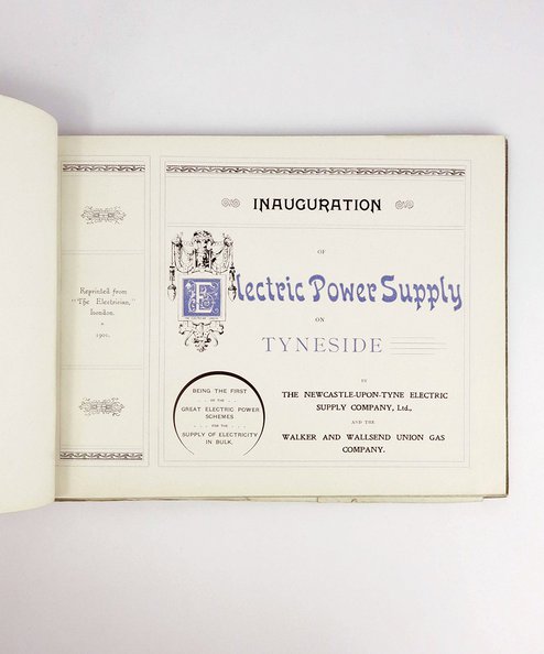 A celebration of the electrification of North Tyneside. Includes Sir Andrew Noble, Lord Kelvin and Dr John Theodore Merz. The book described in some detail the means by which North Tyneside was electrified, with many photographs, diagrams, and maps.