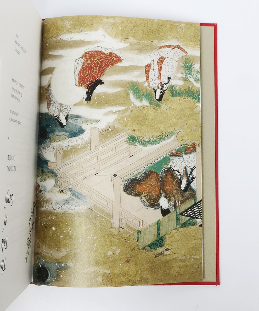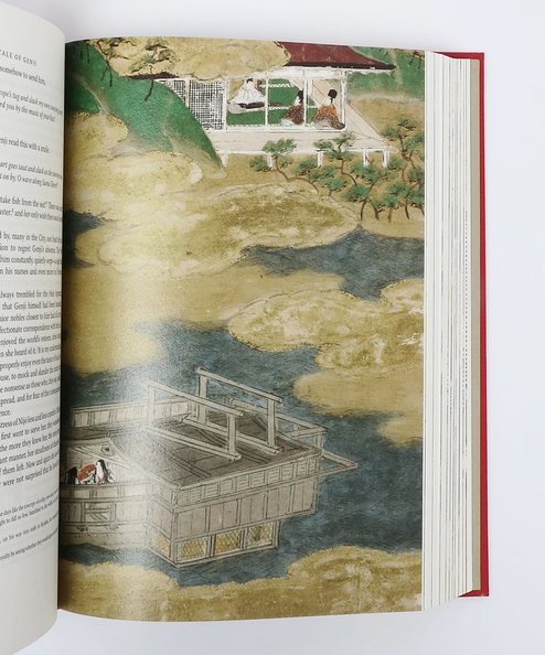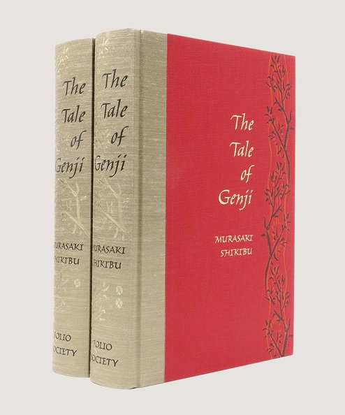 First thus. Octavo, pp. xl, [2], 605, [1]; viii, [2], [606]-1250. 54 colour plates (33 to Vol I and 21 to Vol II) by Tosa Mitsunobu from the Harvard Art Museum’s “Tale of Genji”album, plus numerous illustrations throughout text, and five maps and diagrams redrawn by Neil Gower. Both volumes in the publishers’ quarter beige art silk with black titles and gilt foliate design to spine, over scarlet cloth boards with gilt titles to upper board and foliate design in brown and orange. Top edges gilt. Housed in brown paper-covered slipcase with repeat of the foliate design in orange to single face. Both volumes clean and bright with no annotation or inscriptions. Slipcase lightly scuffed to upper edge. A near fine set in near fine slipcase.