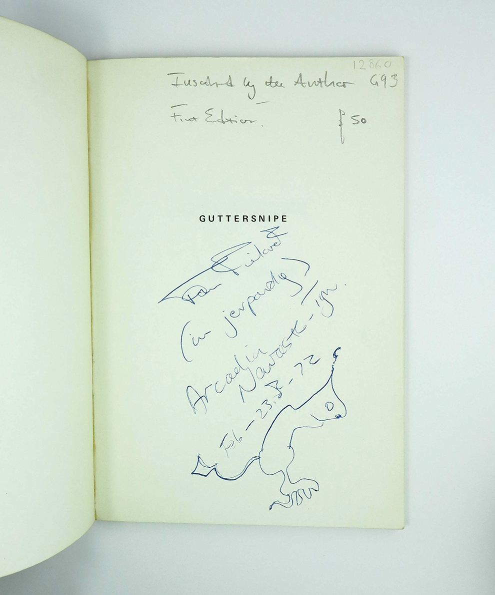 Inscribed “Tom Pickard (in jepardy[sic]) Arcade in Newcastle Feb, 23rd 72” with a surreal doodle to the half-title. Pickard’s experimental semi-autobiographical novella centring on a working class poet dropout.
