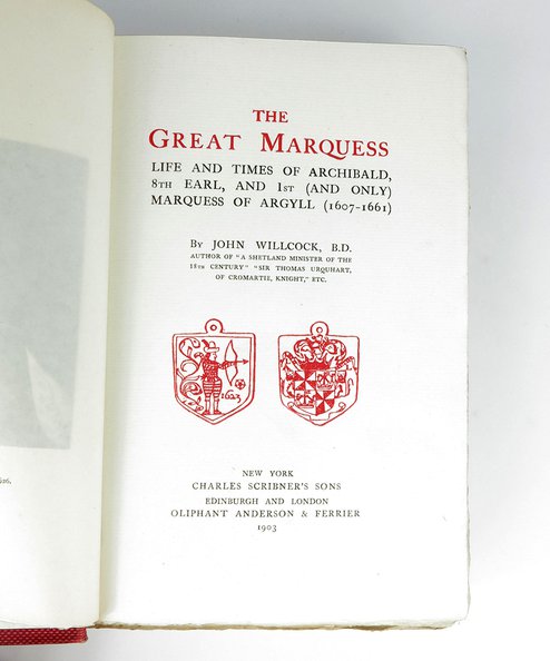 Signed limited edition of 50 copies only, of which this is number 30. Quarto, pp., xxiii, 396. With 8 tissue-guarded lithograph plates, as called for. Printed on laid paper. Publisher’s red beaded cloth, arms of the Marquess of Argyll gilt to upper board, titles gilt to spine. Upper edge gilt, lower edge and fore-edge uncut. Corners lightly bumped, very light soiling to edges of boards and to spine, joints slightly worn. Contents clean and bright. A very good copy.