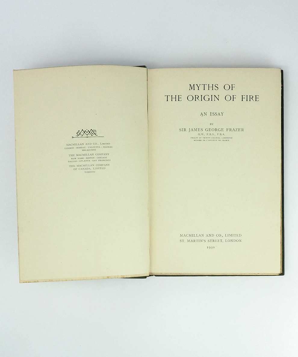 A late work by the eminent Scottish anthropologist and folklorist, J. G. Frazer, perhaps best known for ‘The Golden Bough’. Frazer’s works were key to inspiring the interest of modernists such as Ernest Hemingway and Ezra Pound into primitivism.