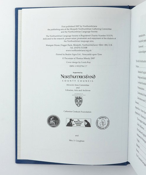 A scholarly and now scarce study of Northumberland's language literature and social history, published under the auspices of the Northumbrian Language Society. This modern version of “The Moody Book” has been transcribed from the author’s original text and includes four facsimile pages.