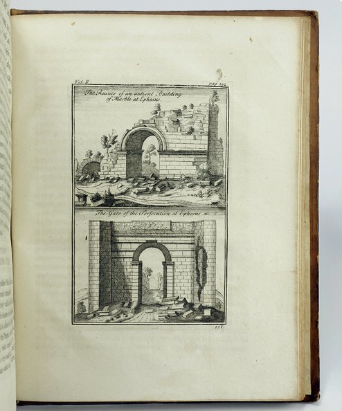 First English Edition. Two volumes. Crown quarto, pp.,[ii] i- xl, 402, xli-xlii, [i] blank; [iv], 398, [xvii] of index. Complete with 152 plates and 1 large gatefold map of the Black Sea and the Levant by John Senex, not present in the French edition. Uniformly bound in contemporary Cambridge panelled calf, very capably re-cased, floral tooling in blind to boards, rolls in gilt to board-edges, ornaments in gilt within compartments to spine, titled in gilt to leather spine-label. Partially scraped gift inscription ‘Ex Dono Fratris [...]’, contemporary price, and ownership inscription of Sir George Chudleigh, 4th Bt. (d. 1738) dated 1719 to front paste-downs, inscription of Sir Tho[mas] Chudleigh, 5th Bt. (d. 1741), partially obliterated, and H[enry] Fownes Luttrell (1723-1780) dated 1754 and priced 14/s, to title-pages. Corners rubbed with a little loss, slight shelf-wear to edges of boards, light, scattered foxing throughout, small, unobtrusive worming to lower margin of 218-243, faded manicule to 284. A very good copy.