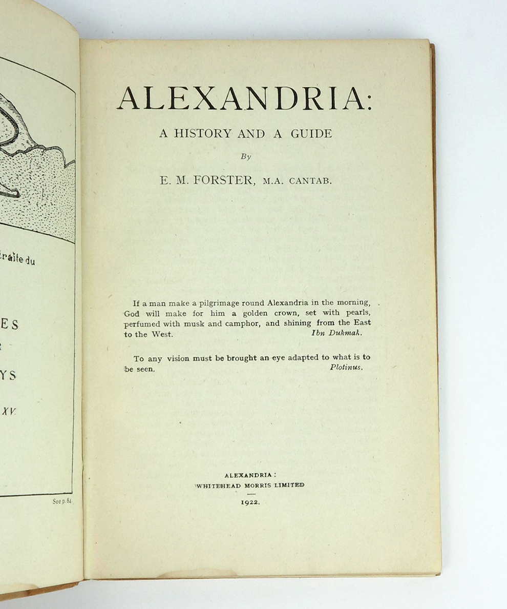 Lawrence Durrell, author of ‘The Alexandrian Quartet’ wrote of this book: “the whole historical perspective of the city, in all its variety, has been captured and fixed in a series of short essays brightly starred with all the virtues of this fine artist. With a marvelous economy he brings the place to life - and gives life to the great personages who inhabited it: philosophers, poets, mathematicians, courtesans. Each portrait is a cameo. And the book despite its strictly utilitarian form and severely practical arrangement of matter is the work of a master essayist. It is in fact vintage Forster.” A scarce book, as according to Kirkpatrick ‘a very large proportion’ of the copies were destroyed in a fire at the publisher’s warehouse. In fact, after the fire and the insurance had been paid to Foster the books were discovered in tact in the cellar. The publishers decided to get around this embarrassment by burning the remaining copies.