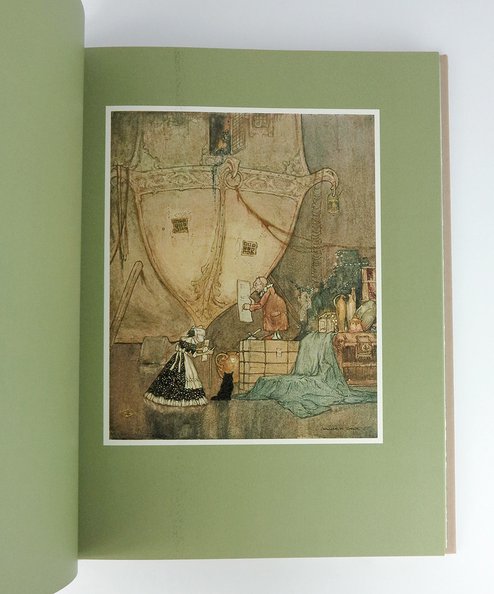 With new introduction by John Howe. Large quarto. With 96 leaves comprising 48 calligraphic text leaves and 48 colour plates, as original, but printed onto a spring green background rather than grey art paper. Quarter white cloth spine, grey paper-covered boards, titles and decoration in black to spine with black titles to upper board. Marbled grey-green endpapers. A near fine copy.