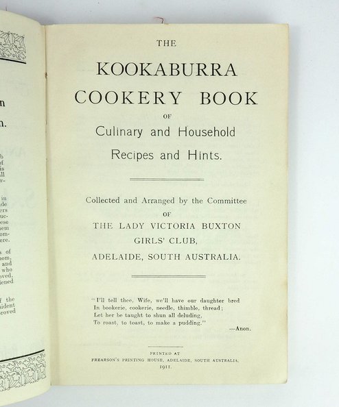 The Kookaburra Cookery Book of Culinary and Household Recipes and Hints.
