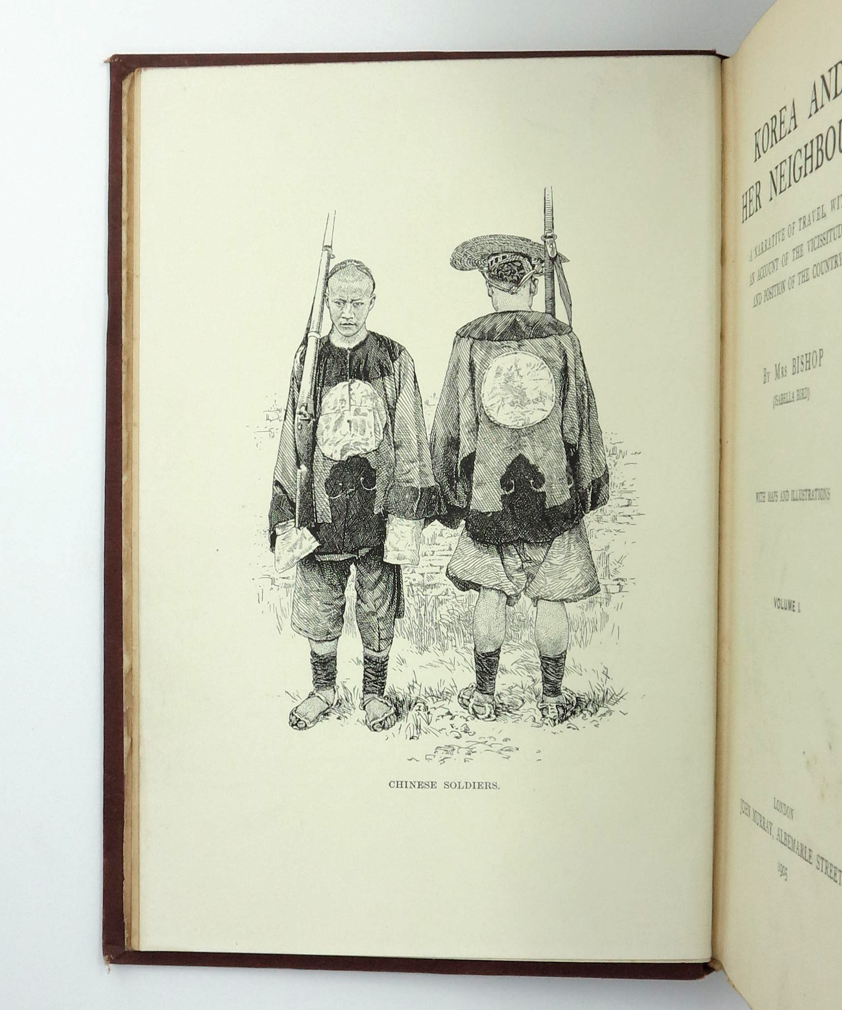 Isabella L. Bird (1831-1904) was born in Yorkshire, but would spend most of her life travelling extensively in Asia and the Pacific. Bird travelled first to Hawaii, then to Sandwich Islands, before travelling in China, Japan, and Korea. She was the first woman admitted to the Royal Geographical Society, and published several accounts of her travels. This volume describes Bird’s travels, undertaken in 1894, from Manchuria, up the Yangtze to Sichuan, to the Tibetan border, and to Korea, which required that the then 63 year-old Bird travel 8000 miles through East Asia solo. The preface describes that this is ‘a long and intimate study of a people whose isolation during many centuries renders a description of their character, institutions, and peculiarities especially interesting at the present stage of their history’.