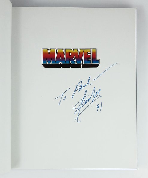 Inscribed First Edition, square quarto, pp., 287. Illustrated throughout. Royal blue cloth covers with gilt titles to spine and blind embossed Spiderman mask to upper board, with full colour illustrated end-papers, in an illustrated unclipped dust-jacket. A near fine copy in a like jacket, inscribed on the title page “To Paul - Stan Lee ‘91”