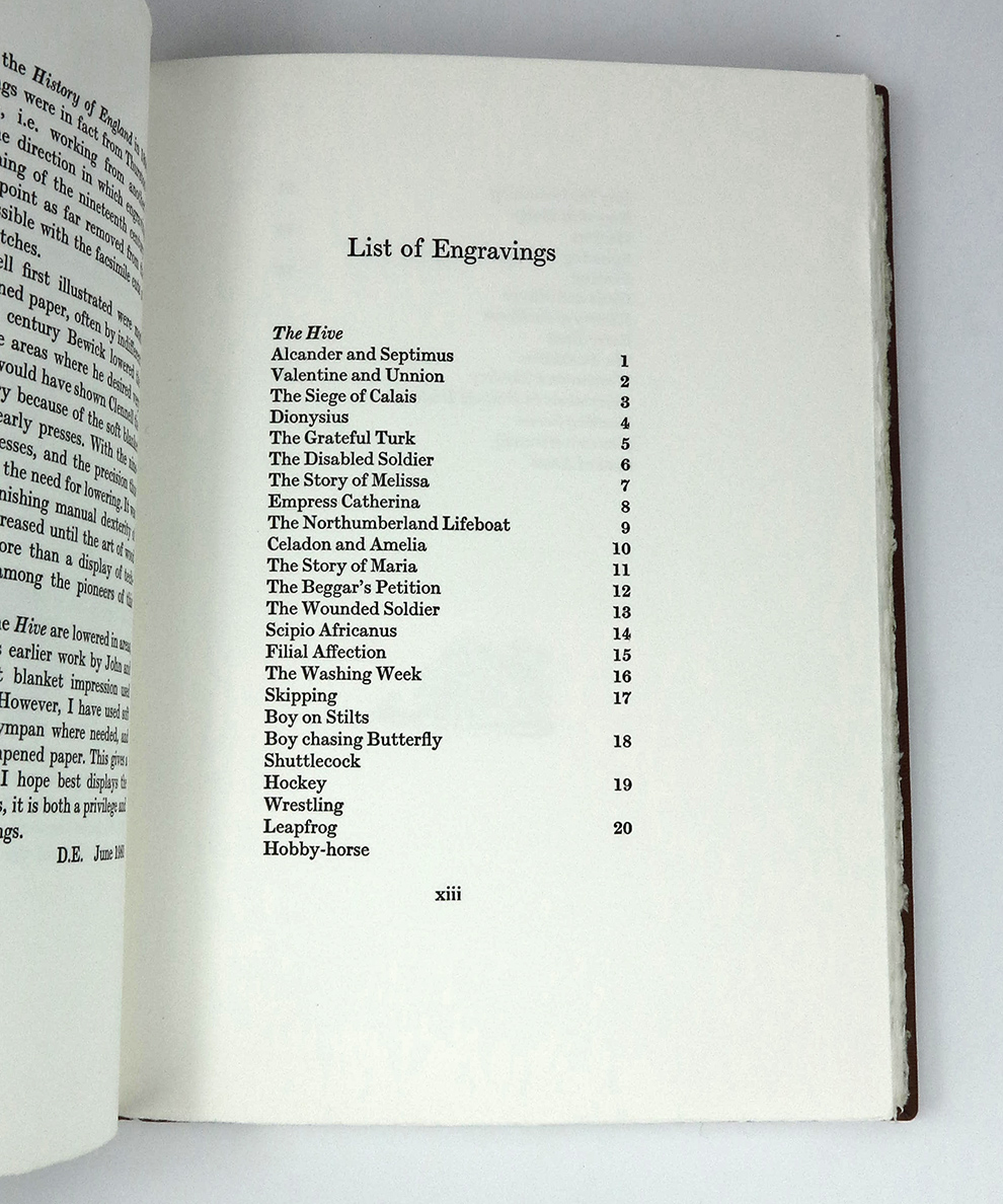 A fine collection of Bewick wood-engravings, printed from the original blocks by Esslemont on a Columbian Press, as Bewick’s contemporaries would have printed them. Clennell was Bewick’s principal assistant in the preparation of ‘A History of British Birds’, and would later go on to be an accomplished wood-engraver in his own right.