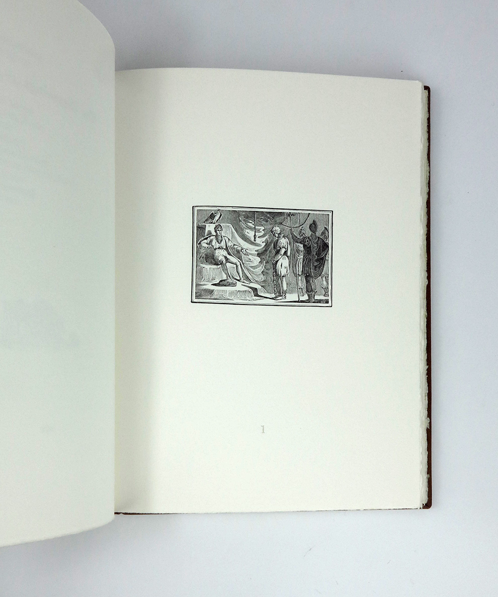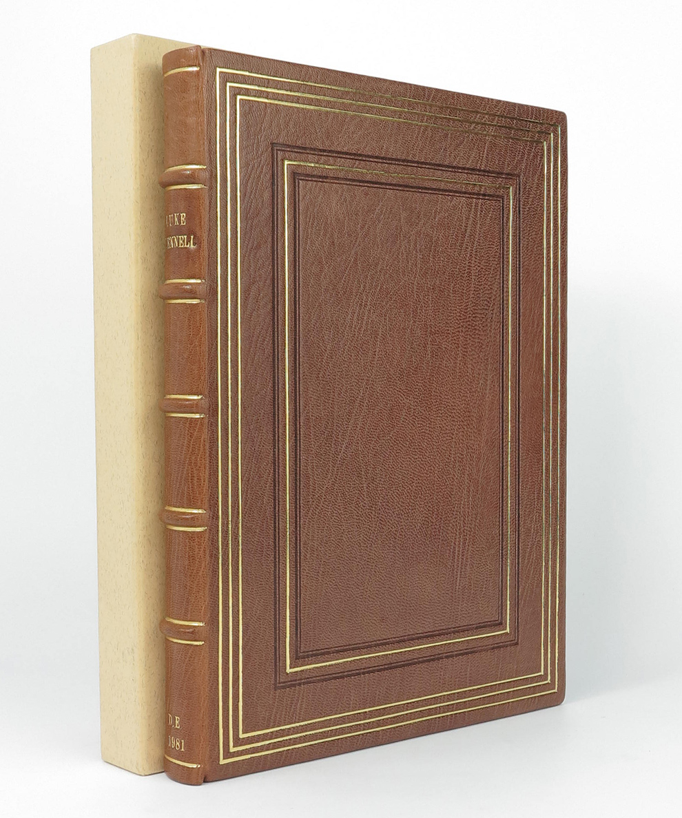 One of twenty-five copies only in full brown morocco, of a limitation of 100. Quarto, pp., xiv, 28 of wood engravings printed to rectos only, 32 of bibliographical notes, [1] colophon printed to verso, [4] of blanks. Ruled panels to boards in gilt and black, titled in gilt to spine, fore-edge and lower edge uncut, printed on handmade B.F.K. Rives Velin Cuve paper. Felt-lined tan slipcase. The very slightest of sunning to spine. Contents clean, bright, and fresh. A near-fine copy.