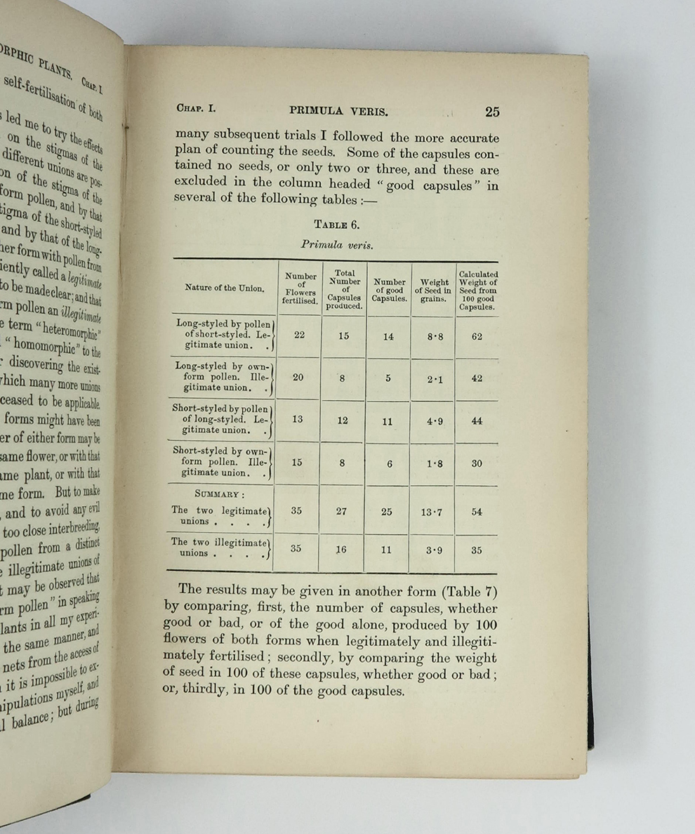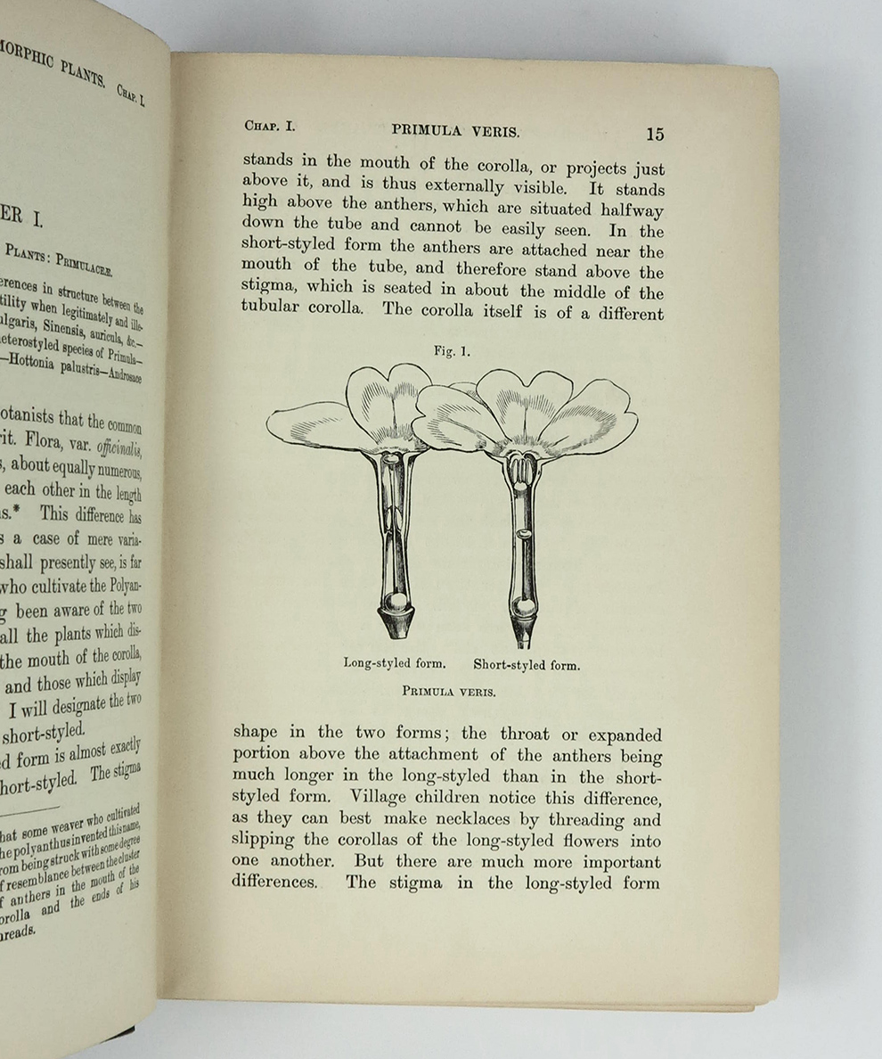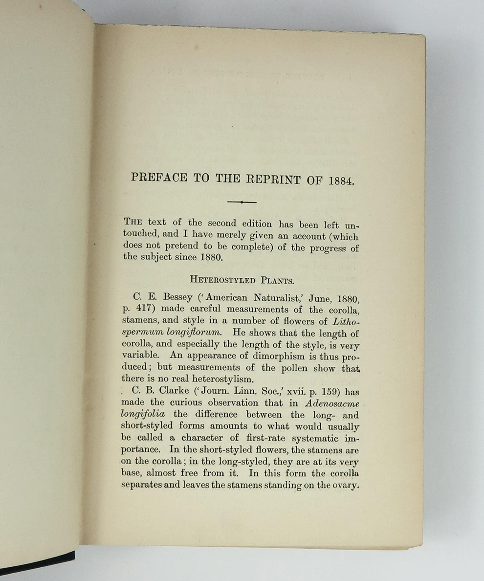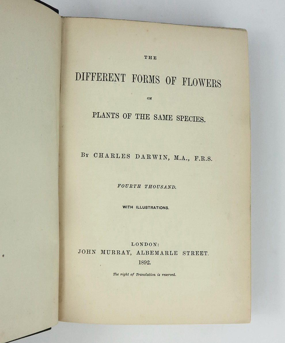 Early edition of one of Darwin’s major works. Darwin recalled in his autobiography: ‘this book consists chiefly of the several papers on heterostyled flowers originally published by the Linnean Society, corrected, with much new matter added, together with observations on some other cases in which the same plant bears two kinds of flowers. As before remarked, no little discovery of mine ever gave me so much pleasure as the making out the meaning of heterostyled flowers.’