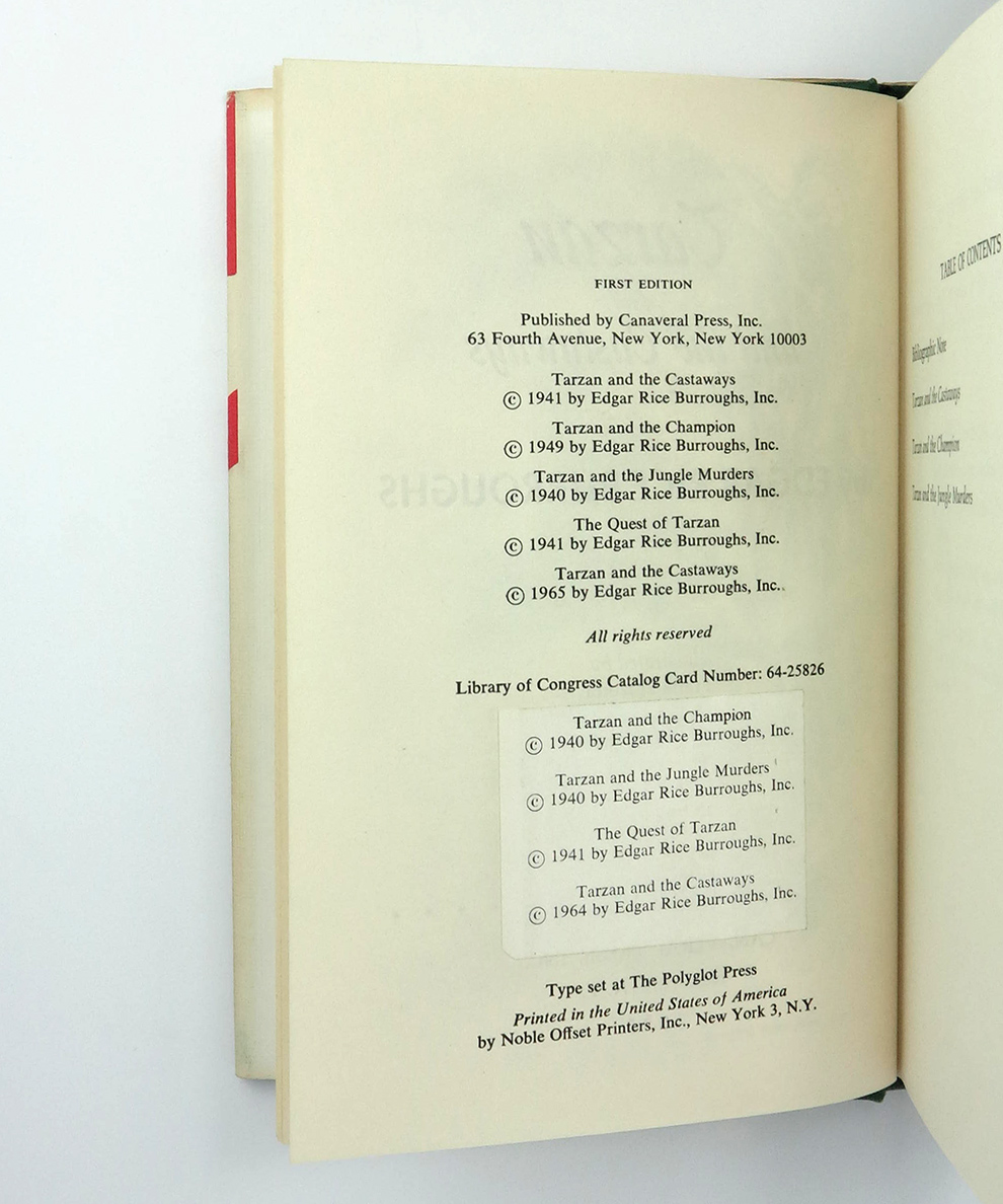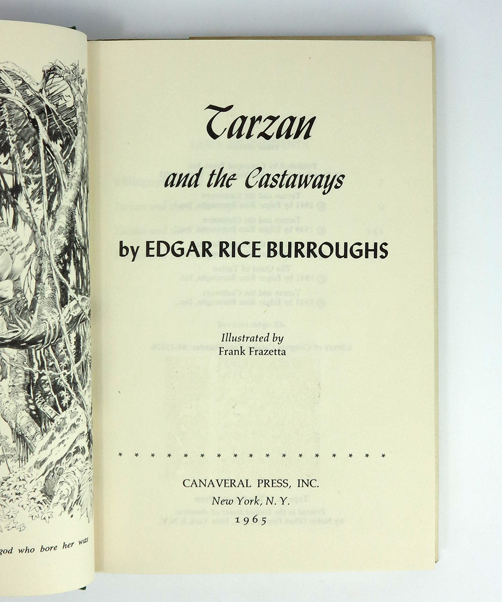First Edition, first Issue, second State, with all the points as described in the standard bibliographies. Hardcover octavo, pp., 229, plus six black-and-white plates illustrated by Frank Frazetta. Original pictorial dust jacket illustrated by Frazetta. Publisher’s dark-green cloth, black lettering to spine and upper board. Printer’s sticker with four dates to copyright page, indicating the Second State. Spine-panel of jacket very slightly faded. No other perceptible faults. Near-fine in like jacket.