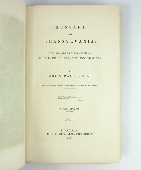 An intimate and detailed study of Hungarian life, from a British agriculturalist who married into Hungarian in 1836. Originally published in 1839, Paget’s Hungary became a publication of particular interest following the Hungarian Wars of Independence in 1849–1850. Republished in response to these new demands for information the volumes were ‘ransacked’ by editors, and became the foundation of widely used reference sources on Hungarian society. This early edition is scarce as a complete set.