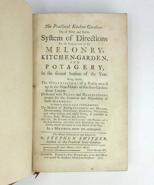 The Practical Kitchen Gardiner: Or, a New and Entire System of Directions For his Employment in the Melonry, Kitchen-Garden, and Potagery, In the Several Seasons of the Year. Being chiefly the Observations of a Person train’d u in the Neat-Houses or Kitchen-Gardens about London. Illustrated with Plans and Descriptions proper for the Situation and Disposition of those Gardens. To which is added, by way of Supplement, the Method of Raising Cucumbers and Melons, Mushrooms, Borecole, Broccoli, Potatoes, and other curious and useful Plants, as practised in France, Italy, Holland and Ireland. And also, An Account of the Labours and Profits of a Kitchen-Garden, and what every Genteman may reasonably expect therefrom in every Month of the Year. In a Method never yet attempted.