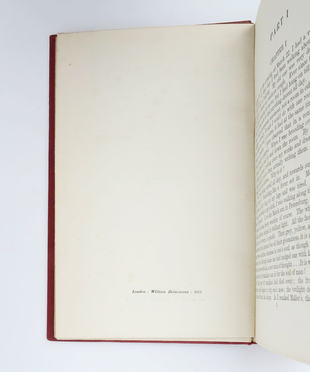The sixth volume of Garnett’s translations of Dostoevsky, executed between 1912 and 1920. Garnett’s ‘Russian Novels’ series ‘provoked a literary craze’, and introduced the works of Dostoevsky to an excited audience of British readers.