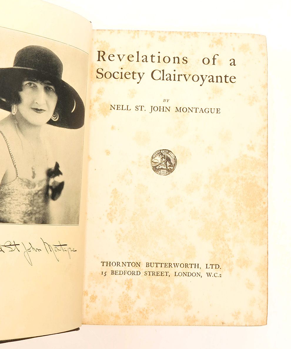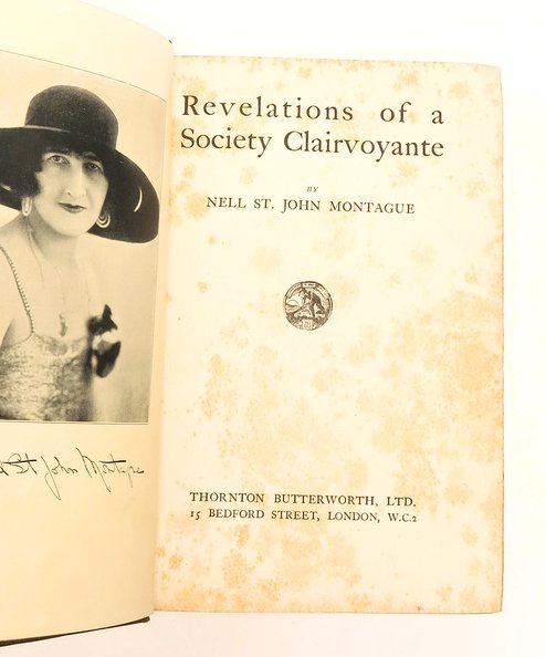 Nell St. John Montague was ‘clairvoyante’ to British society in the 1920s and ‘30s. She is perhaps best known for predicting her own violent death, and used her abilities to both read the fortunes of the rich and famous, and to solve crimes. This rare volume is her memoir, which details both her mystical practices and supplies details about her work as a performer to high society.