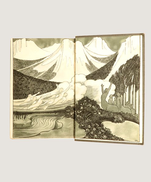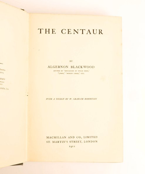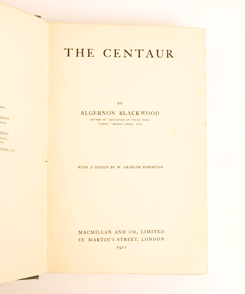 First edition, in the first state binding. Octavo, pp., [8], 347, [1], [12] of publisher’s advertisements. Original publisher’s blue/green cloth, titled in gilt to spine and upper board, elaborate wraparound centaur design by Walford Graham Robertson embossed in blind to boards; with the same design to end-papers. Minor rubbing to joints, slight shelf-wear to extremities. Small, neat ownership inscription in ink to front-free end-paper and half-title. A very good copy.