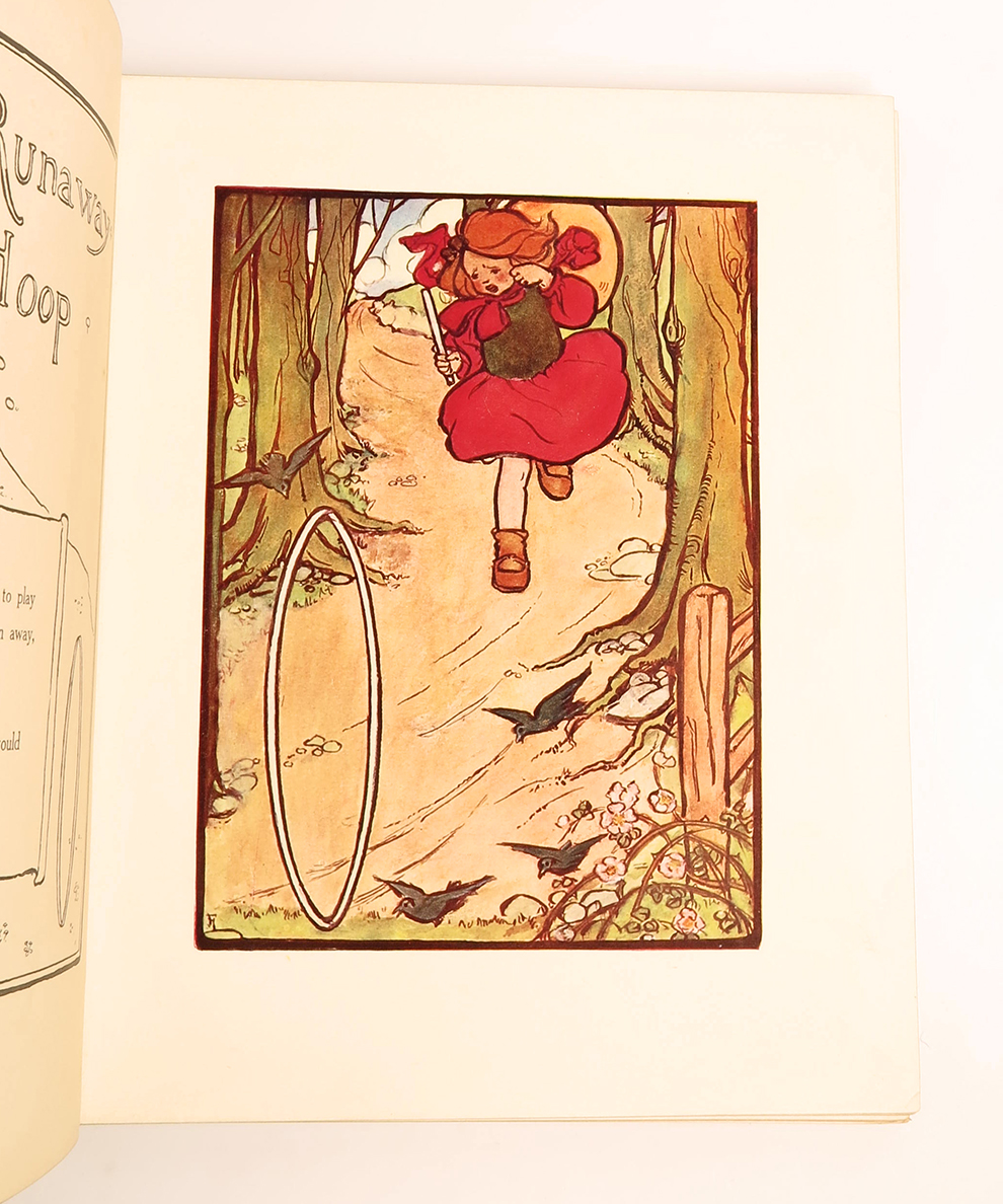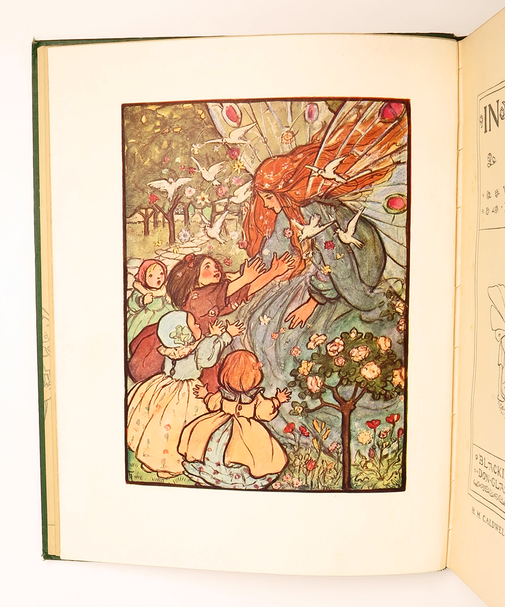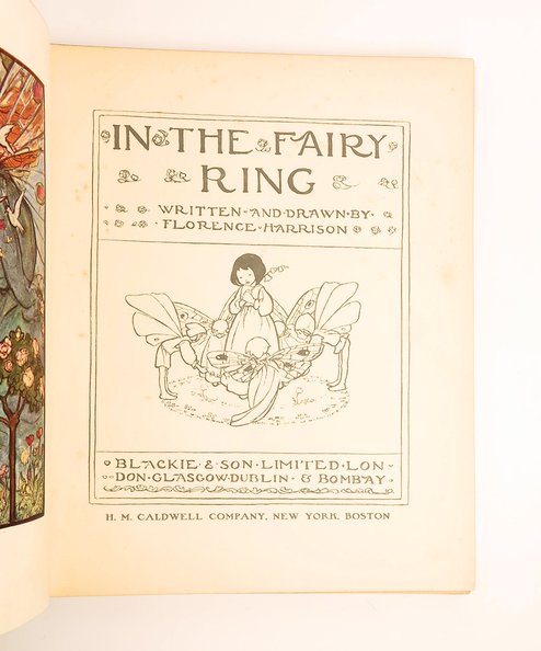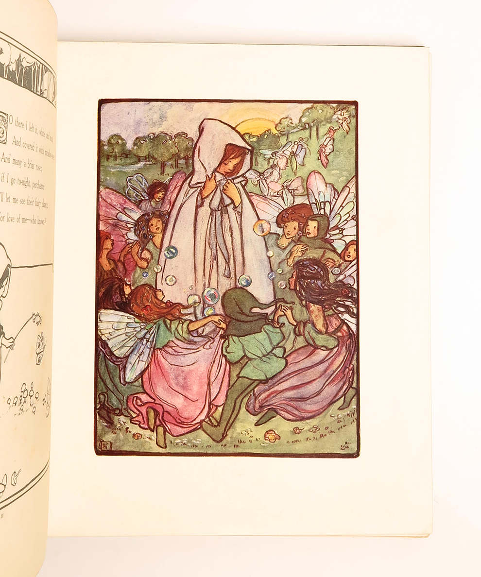 First British Edition. Quarto, pp., 63, [i], an illustrated poem to a page, plus 24 full-page colour plates. Collated and complete. Original publisher’s pictorial green cloth, fairy-ring design by Harrison and titles in gilt to spine and upper board; pictorial front end-papers partially hand-coloured by a former juvenile owner; all edges gilt. Contemporary ownership inscription in ink to recto of front free end-paper, and bookplate to verso. The slightest of shelf-wear to extremities, binding bright and fresh. Light scattered foxing to first and final leaves, with a few spots within, but generally clean and bright. Near-fine.