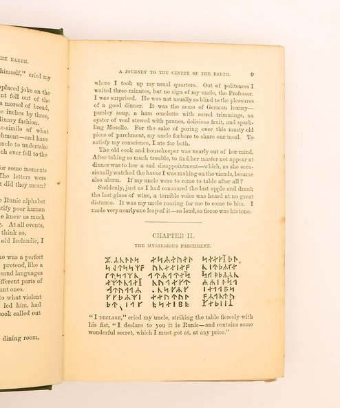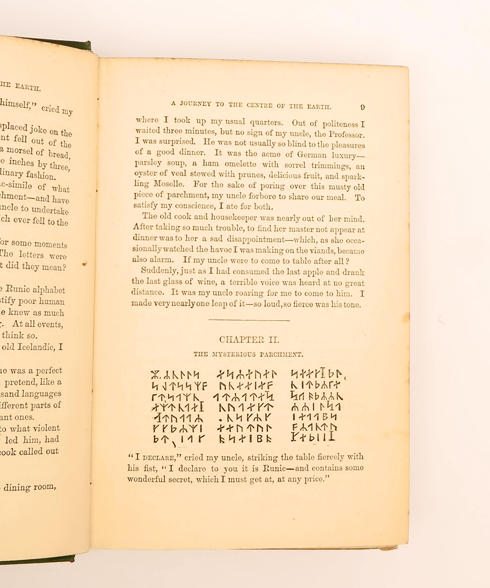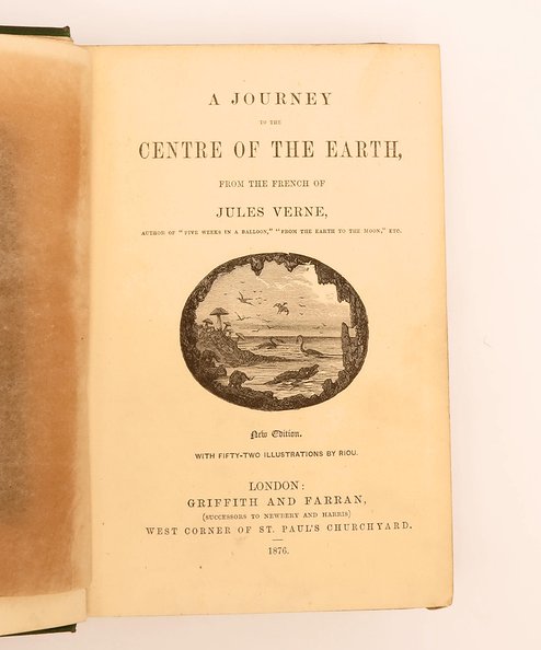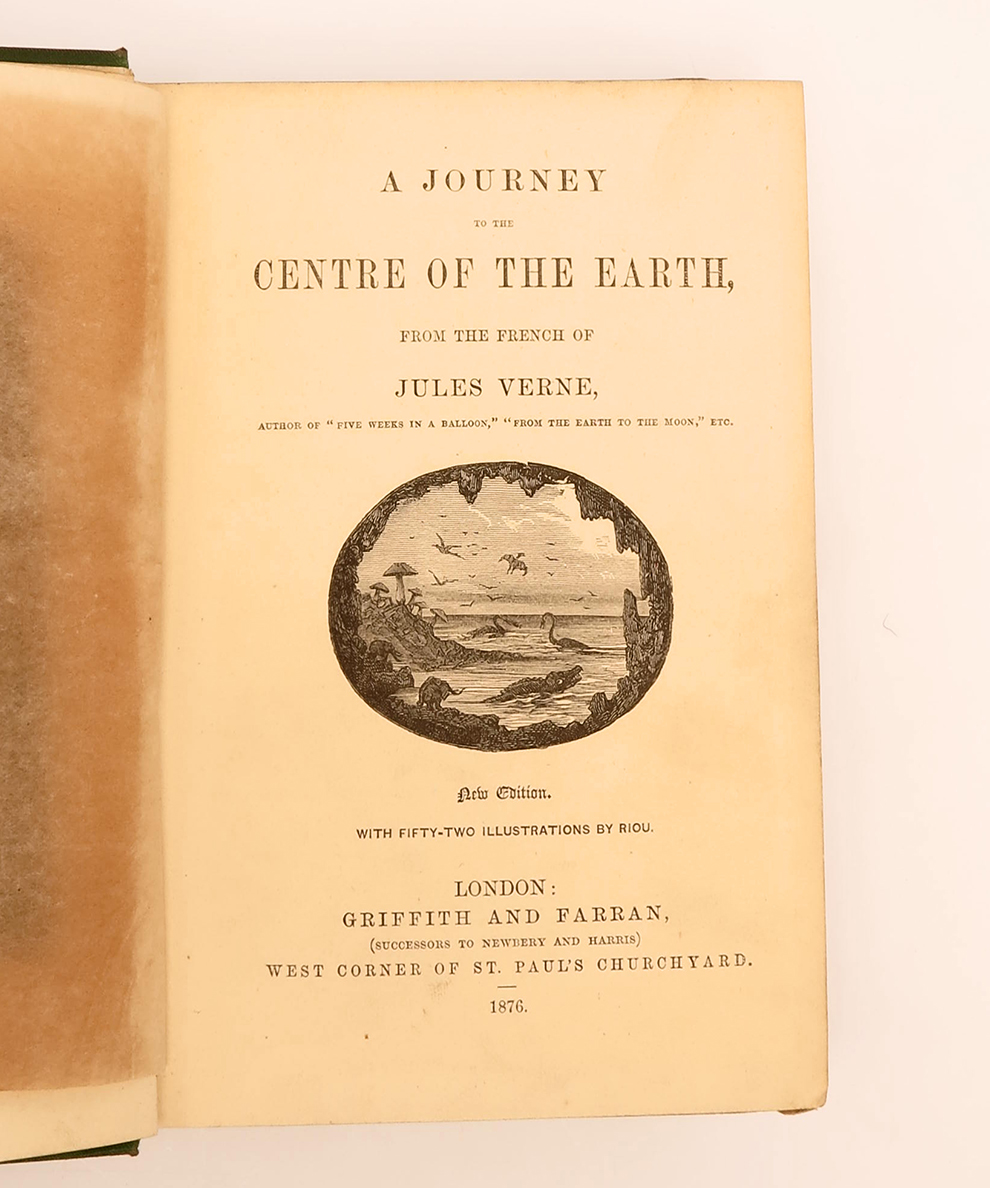 A Journey to the Centre of the Earth was published by Griffith and Farran in 1871. Two rival English translations from Ward, Lock & Co., and George Routledge and Sons in 1876. This third Griffith and Farran edition retains the wood-engraved illustrations found in the first French editions, that came about as part of the long-standing collaboration between Verne and Riou, who would go on to illustrate