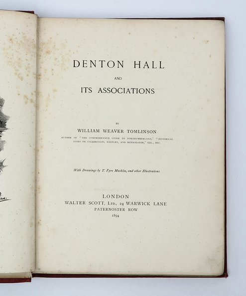 An extensive study of Denton Hall, Newcastle, owned by one of its former residents. Situated on what is now the West Road, there was a house at the site partially constructed from the stones from Hadrian’s Wall in 1503. What is now Denton Hall was originally a manor house built in 1622, which was owned first by the Erringtons, and later the Montagus, including the Bluestocking and woman of letters Elizabeth Montagu (1718-1800). The hall was purchased by William Andrew L’Anson in 1886 and extensively remodelled. L’Anson’s bookplate may indicate his former ownership, but this bookseller finds one presentation copy bearing the same bookplate. John [????’s] inscription is more compelling evidence of this book’s former home, and was no doubt consulted by the former owner while in residence.