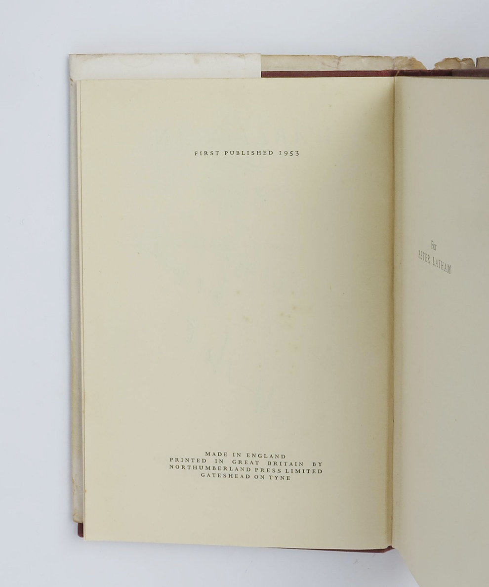 First edition. Ooctavo, pp., 352. Illustrated end-papers. Publisher’s burgundy cloth with gilt titles to spine, in an unclipped illustrated dust-jacket. Inscribed to the title-page “To Caroline Love and Best Wishes Ralph Bates”. Minor foxing to fore and bottom edge of text-block, top-edge dusty. Creases and minor short closed tears to the dust-jacket corners, minor loss to head and tail of spine and patch of toning to the spine and lower panel.