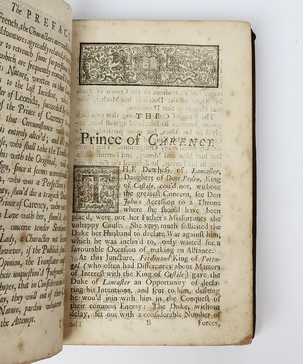 Historie de Jean de Bourbon, Prince de Carency (1692), this volume was translated anonymously, and significantly transformed into a sentimental novel with a happy ending. As one critic notes ‘