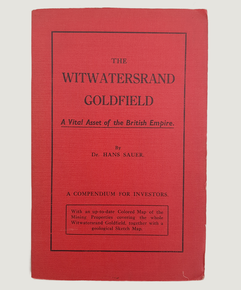 FIRST EDITION. Octavo. 30 pp. Book Condition: Very Good. Original limp red cloth with black titles, a little worn to corners. Minor rusting to staples otherwise a very clean copy. No inscriptions. Retains the more important folding Witwatersrand Goldfields property map drawn by A J Cleveley to rear pocket but lacks the geological sketch map. Very scarce publication of interest to historians of the Transvaal region.