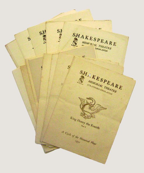 29 programmes for productions of Shakespeare’s plays during the 1950s. Quarto (each approx 25 cm x 19). Four have printed synopses loosely inserted, while Richard III has a printed pedigree; 2 include promotional slips relating to refreshments. Each have a historic central horizontal crease from folding and several are lightly soiled with minor foxing to rear covers, otherwise all are clean and bright; one of the 1952 Tempest copies is creased to lower edge and has ownership inscription to front top corner. Overall condition: Very Good.