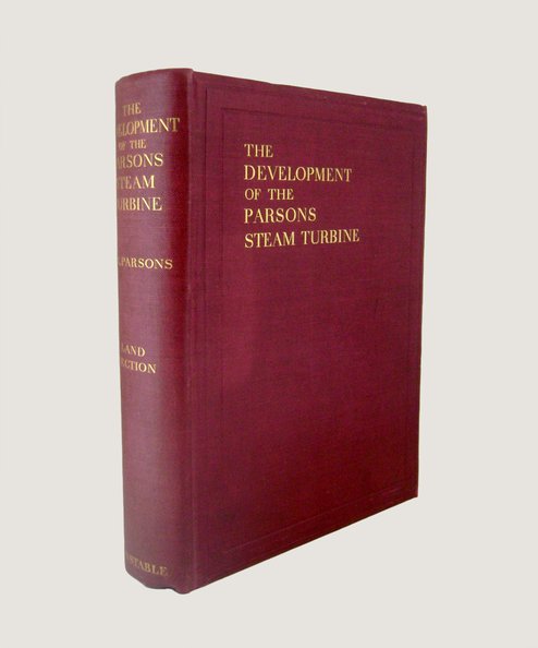 FIRST EDITION. Quarto, pp. viii, 420. Frontispiece of the memorial tablet to Sir Charles Algernon Parsons plus 343 numbered illustrations, some within text, others to 96 plates and to 8 large fold-out diagrams. Publishers’ maroon cloth with bevelled boards, gilt titles to spine and upper board and double border in blind to upper board. Top edge gilt. Spine very faintly sunned and lower board lightly surface scuffed. Ffep creased with ownership inscription in black ink: “T. Bowater Station Superintendent Worcester Power Station”. Light creasing to single fold-out diagram otherwise contents clean. A Very Good copy.