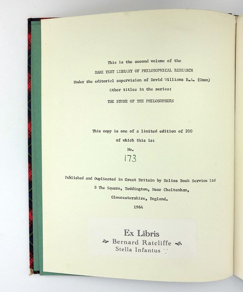 First Edition thus: number 173 in a Limited Edition of 200 copies only. Quarto, pp., [4], ix, 64. Green quarter cloth with silver titles to spine; tartan paper-covered boards with paper title onlay to upper board. Pictorial plate loosely inserted. Spine tips and board edges a little rubbed, with minor wear at bruised lower corners. From the library of Bernard Ratcliffe, with his bookplate below publication details; no annotation or inscriptions. A very good copy.